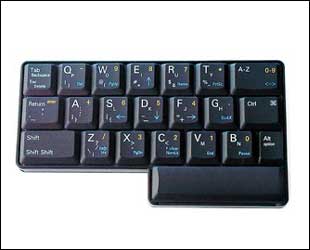| Tja, dit ding is me nog niet helemaal duidelijk. Het lijkt in ieder geval op een muis met ingebouwde radio. Weet jij wat het is, mail me dan ff! info@jetsonline.nl | Dit halve toetsenbord is gemaakt zodat je kan typen en scrollen tegelijk. De linkerhand op het toetsenbord en de rechter op de muis. De spatiebalk heeft ook de functie van 'Shift' en je krijgt door deze te gebruiken de tekens van 'de andere helft'. | |||